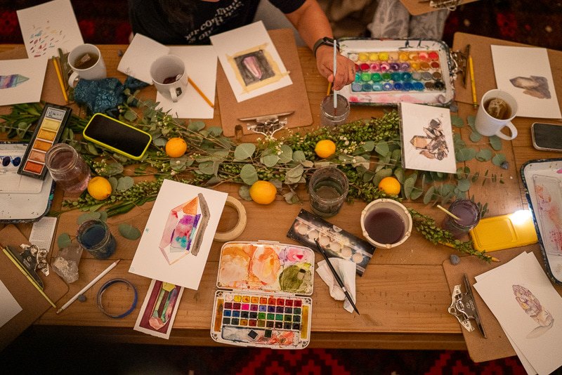 It has been years since I painted, but this guided watercolor session made me feel like I could just release my need for perfection and enjoy the relaxation of painting without a goal. The instructor walked us through painting whichever crystal we connected most with, and I swear, my painting wasn’t half bad. It was meditative, fun, and just the right amount of challenging. Plus, we got to take our masterpieces home as a reminder of the weekend.