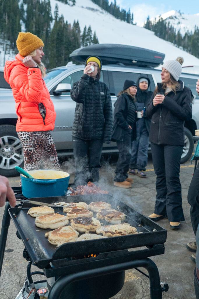 Think tailgating is just for football? The breakfast tailgate was the most delightful fusion of cozy and creative. We gathered outside at the base of the slopes, sipped steaming drinks, and marveled at the mountain views while eating a high protein breakfast.