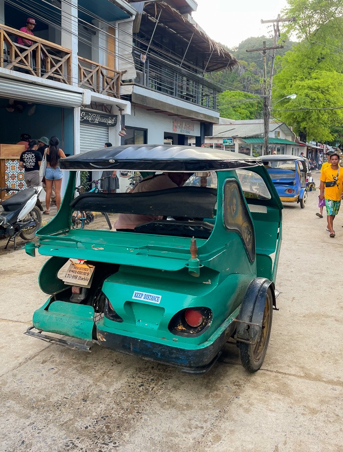 I also took a tricycle ride a few times when moving from one accommodation to another with my luggage. Some drivers asked for more, but I could always negotiate it down to about 300 PHP per ride. This is also a good option to get around if you are not comfortable riding your own bike. I saw that you can also hire a private driver for the day for about $80, but I don’t think it’s necessary.