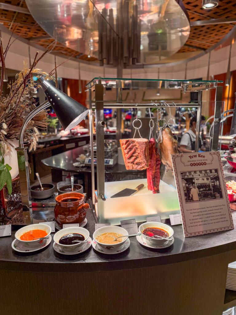 🍱 Dinner Buffet: Michelin-guide-worthy local cuisine and an insane dessert spread that could bring a grown adult to their knees. I may have hoarded three mini cheesecakes. Respect the hustle. The Fullerton is known across the city for its cakes and pastries—even non-guests come just for dessert.