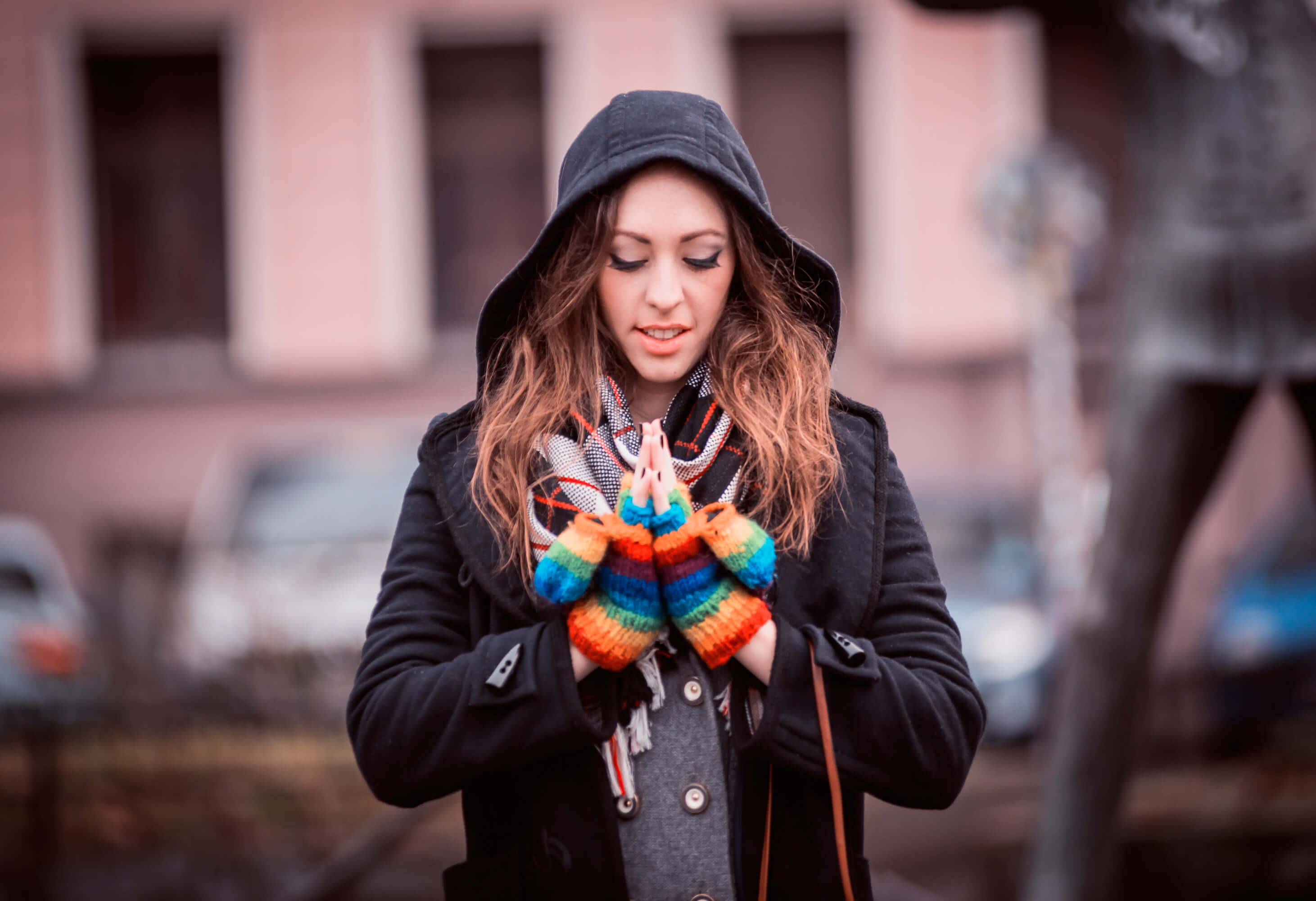Next we have to talk about the accessories, which are essential for warmth. Ever since I started posting my winter photos, the same comment keeps coming up over and over: “I love those rainbow gloves!” I love them too! I purchased mine from a woman in Nepal before my Annapurna trek, but if you want a similar pair, you can buy them on Amazon.