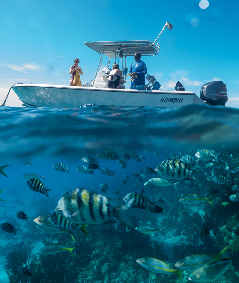 Like most of the animal attractions in the Exumas, a local guide takes their favorite food — conch — out into the water to attract them.