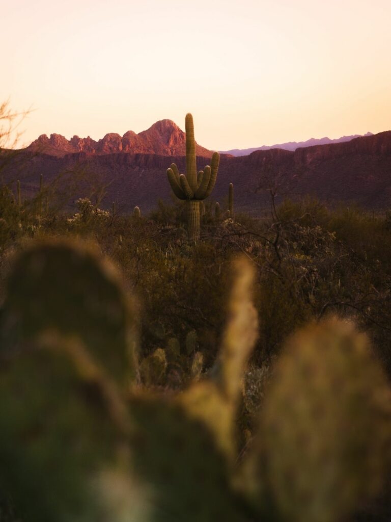 In the west part, you will see plenty of the namesake cacti — the saguaro. In the east part, you will see colorful red rocks and a more rugged terrain, and fewer people, in my experience.