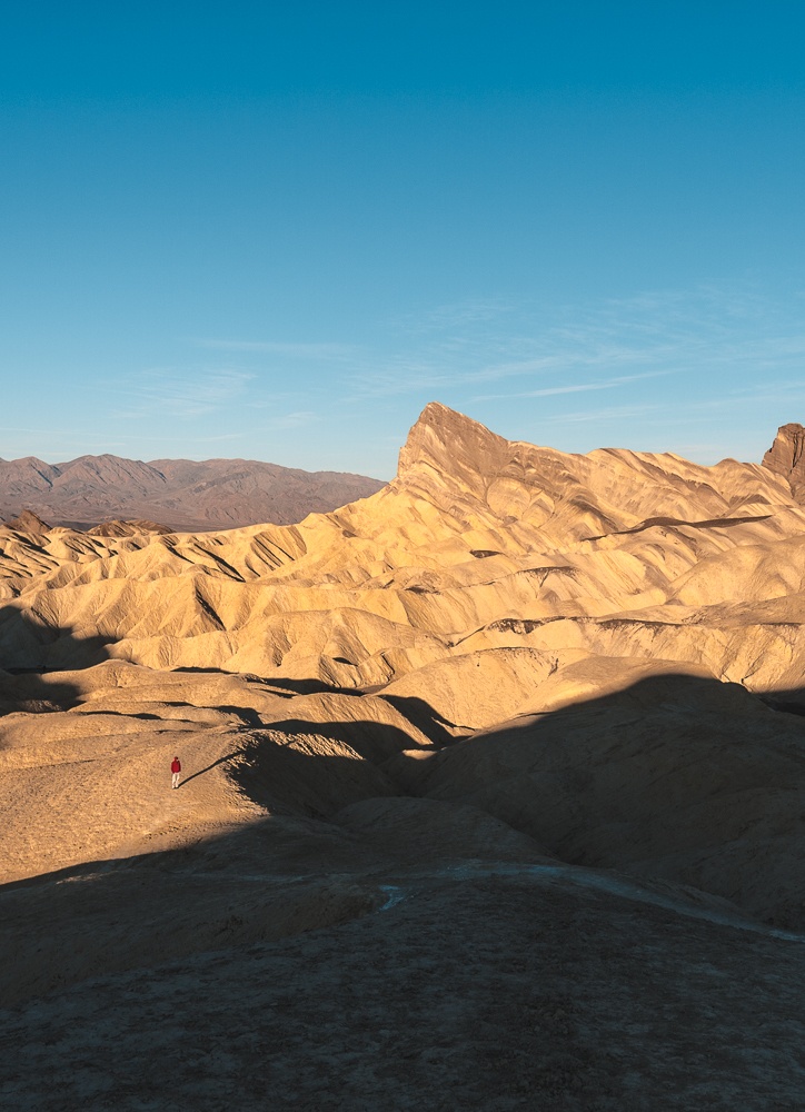If you can find a space, go ahead and photograph from there, but I also really enjoy taking photos along the Zabriskie Point trail at this time of day. It has such interesting shadows it’s almost like modern art to photograph there.