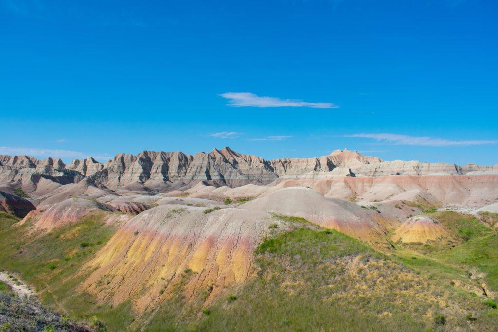Badlands National Park (also known simply as The Badlands) is home to some seriously unique landscapes! There are numerous colorful rock formations that have been eroded by wind and water (forming buttes and pinnacles) spattering the landscape before dropping off into the largest undisturbed mixed grass prairie in the country. With so much unique terrain, the Badlands makes for a packed day full of hiking and exploration!
