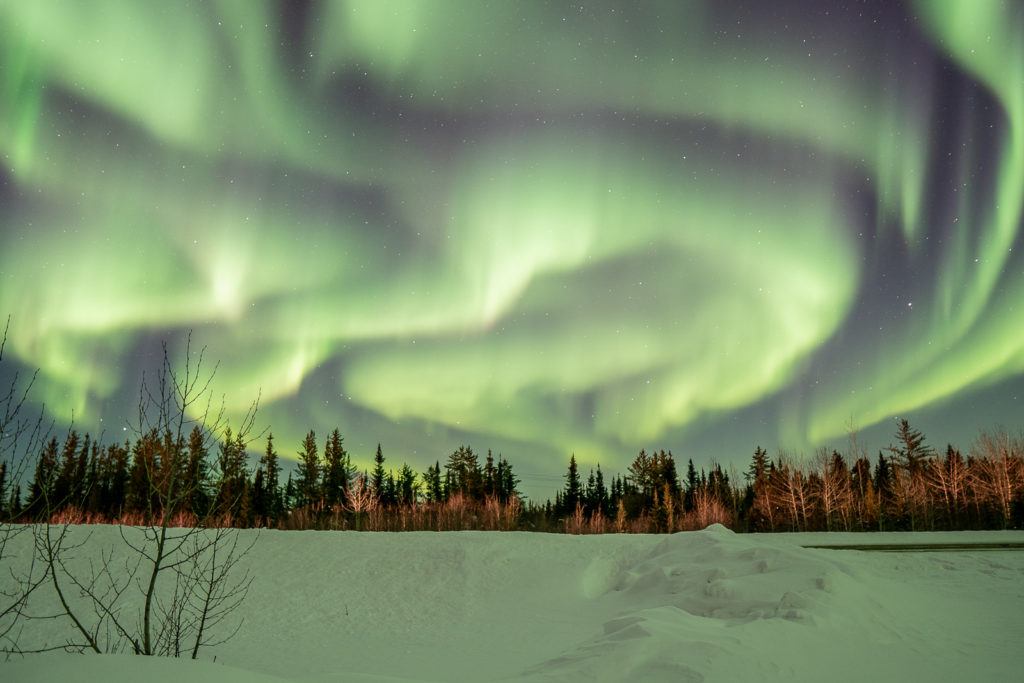 Listed by National Geographic as one of Canada’s “50 Places of a Lifetime”, this tiny town has earned itself a big reputation. Only around a thousand people live here, so you’ll have no trouble with light pollution. Churchill calls itself the “Polar Bear Capital of the World”, but when the winter rolls around and the bears are out on the ice, the aurora hunting is at its prime. Churchill boasts 300 nights per year with the potential to see the northern lights thanks to its location.