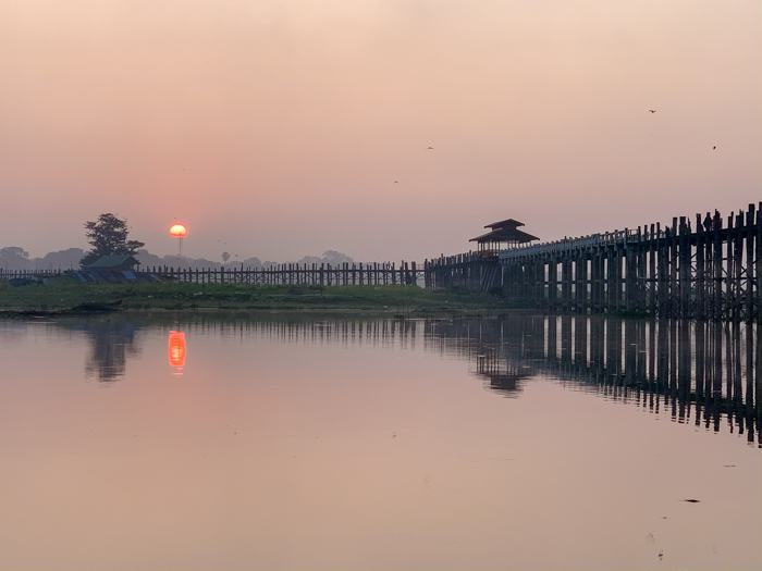 While this bridge is famous for its sunset, I am honestly not sure why, because the sunrise is more optimal, IMHO. You get the beautiful sun rising right in front of you while you admire the monks, and tourists, walking across the bridge into the bright, orbital sun. Plus, it’s much less crowded if you go at sunrise. Leave downtown Mandalay by 5:30am to get there in time.