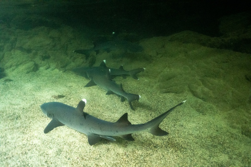 The white-tipped reef shark is the most common species of shark in the Galapagos. It is small in size and does not behave aggressively toward humans. The sharks can be seen at a variety of ocean depths, but they usually stick to the shallows. During the daytime, they hide in caves in groups so dense that they sometimes stack on top of each other! They usually return to the same cave over and over again, too. Then at night, they come out to hunt through the coral for food. Interestingly, newborn white-tipped reef sharks are independent from the start — off on their own from day one. You can find these little guys all year long on the north half of Isabela Island and near the tiny islets of North Seymour, Champion and Gardner.