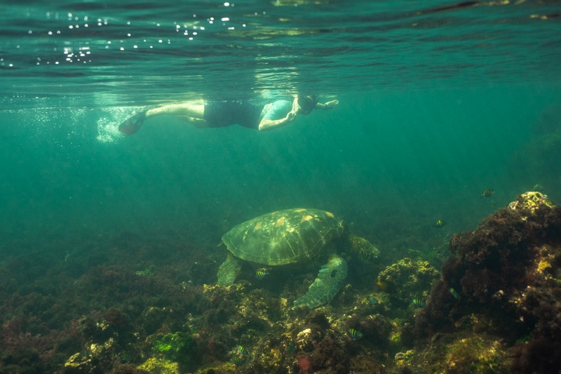 Las Tintoreras Islet has plenty of marine iguanas and the snorkeling will provide opportunities to swim with sea lions, sea turtles, rays, and my favorite, a little alleyway created by lava rock that was full of white-tipped reef sharks! I’ve never seen that many all at once!